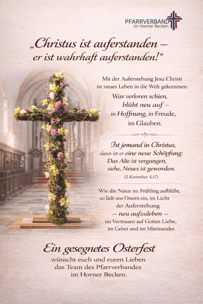 Die Freude über die Auferstehung Jesu war in den Ostergottesdiensten unseres Pfarrverbandes deutlich zu spüren. In einer festlichen Atmosphäre kamen viele Gläubige zusammen, um Ostern gemeinsam zu feiern und die Botschaft der Hoffnung neu zu erleben.