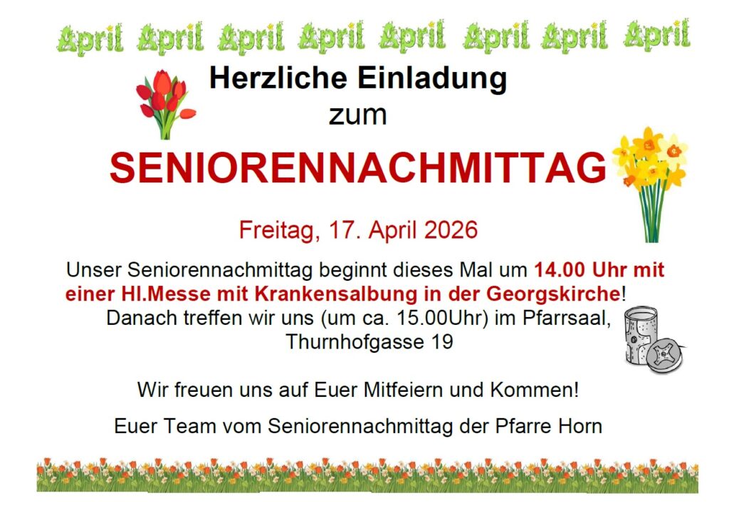 Beginn ist dieses Mal um 14 Uhr in der Pfarrkirche St. Georg. Es besteht bei der Hl. Messe die Möglichkeit zum Empfang der Krankensalbung.