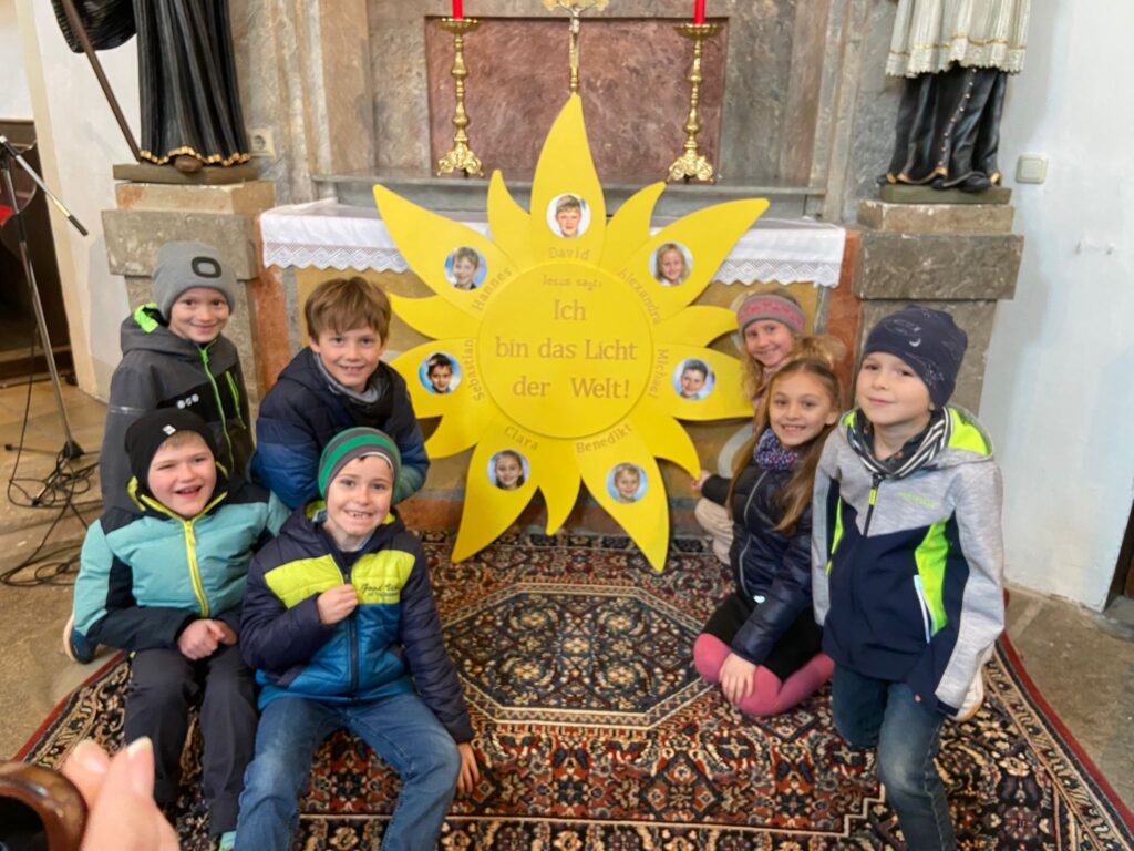 Im Gottesdienst wurde besonders das Symbol des Lichtes aufgegriffen. Dies ist ein Zeichen, dass Jesus für uns Menschen Licht und Orientierung auf unserem Lebensweg ist. Die Erstkommunionkinder gestalteten Teile der Messe mit und machten deutlich, dass sie sich in den kommenden Wochen auf ihr großes Fest vorbereiten.
