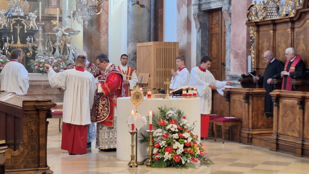 Zahlreiche Gläubige nahmen am feierlichen Hochamt in der Stiftskirche teil. Anschließend lud die Gemeinschaft des Stiftes zur Agape im Prälatenhof, wo sich viele Gäste in stimmungsvoller Atmosphäre zu Begegnung und Gespräch einfanden und die Musikkapelle von Altenburg zum Frühshoppen aufspielte.