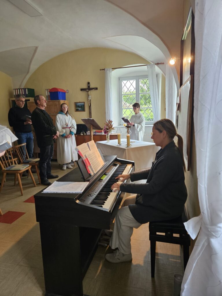 Da die Pfarrkirche Mödring aufgrund der Renovierungsmaßnahmen immer noch gesperrt ist, fand die erste Wortgottesfeier im Ausweichquartier des Pfarrhofes statt. Es war ein wunderschöner, heimeliger, familiärer Rahmen. Danke Monika und Linda für die würdevolle Gestaltung des Gottesdienstes.