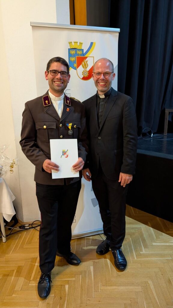Unter den ersten Gratulanten befand sich Generalvikar Dr. Christoph Weiss, der dem neuen Bezirksfeuerwehrkuraten im Namen der Diözese zu seiner Bestellung gratulierte und ihm Gottes reichen Segen für seine Aufgabe wünschte.