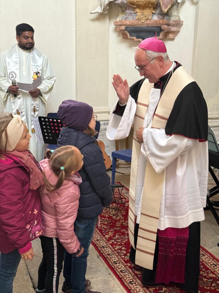Den Abschluss des Tages bildete um 17:00 Uhr eine Andacht mit Kindersegnung, bei der ganz besonders die Kinder im Mittelpunkt standen. Ein Kinderchor gestaltete die Feier musikalisch mit großer Freude und Begeisterung und trug damit zu einer besonders stimmungsvollen Atmosphäre bei. Weihbischof Dr. Anton Leichtfried spendete den Segen und richtete herzliche Worte an die Kinder und ihre Familien.