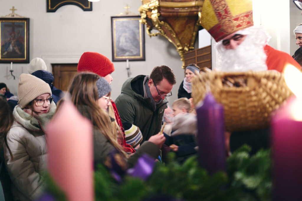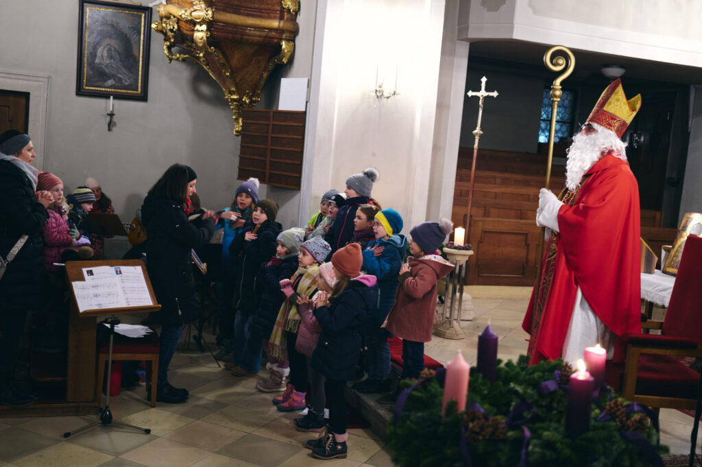 Während der Andacht, welche vom Kinderliturgieteam liebevoll vorbereitet wurde und vom Kinderchor musikalisch umrahmt wurde, kam der Nikolaus auf Besuch. Natürlich hatte für alle ein kleines Geschenk am Ende der Feier mitgebracht.