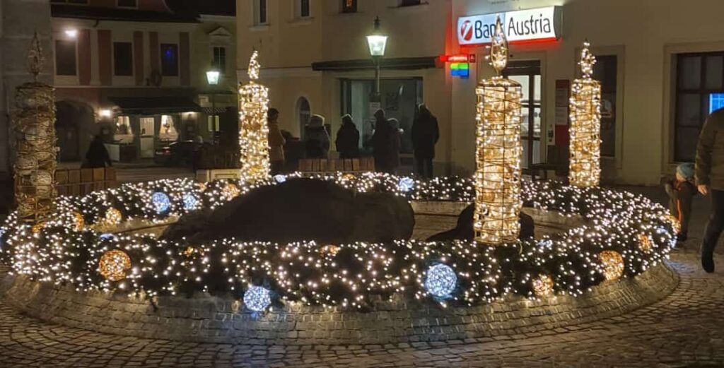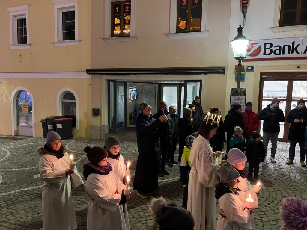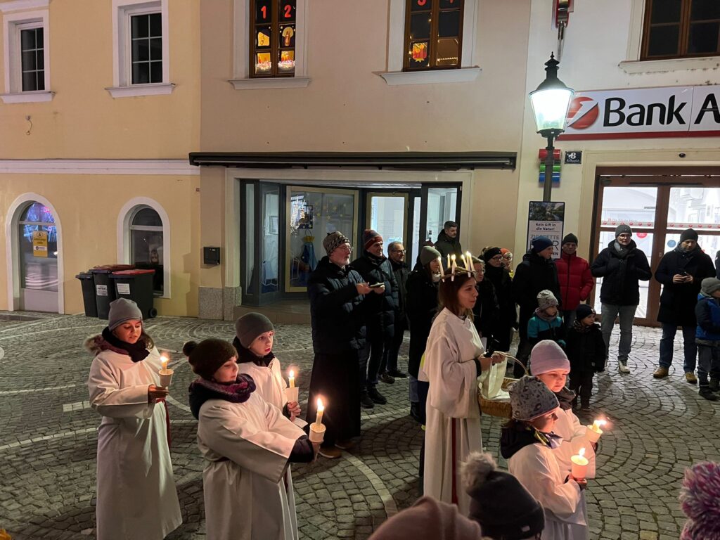 Am Vorabend des dritten Adventsonntages war die Hl. Lucia beim Adventtreffen vor der Horner Pfarrkirche St. Georg zu Gast. Beim großen Adventkranz versammelten sich zahlreiche Familien, Pfarrangehörige und Besucher, um gemeinsam diese stimmungsvolle Feier zu erleben.