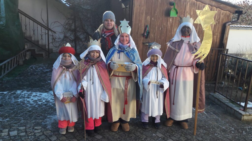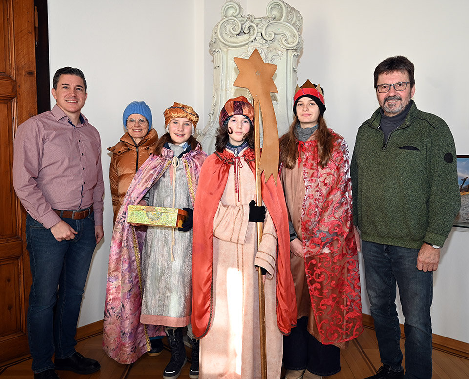 Auch Karla, Kilian, Philipp, Fabian und Oliver sammelten für die Hilfsprojekte in Tansania.In der Horner Innenstadt brachten Iris, Ronja und Valentina mit Margot den Segen fürs neue Jahr.Lea begleitet Raphael, Jonas und Noah, damit sie die Frohe Botschaft zu den Menschen bringen.Anna, Florian, Niklas und Fabian bringen gemeinsam mit Diakon Heinz Meyer die Frohe Botschaft zu den Menschen.Auch Lina, Emilia, Enja, Sophia und Katharina sammelten für die bedürftigen Kinder in Tansania.Die Königinnen der Innenstadttour besuchten auch Bürgermeister Mag. Gerhard Lentschig und Stadtamtsdirektor Dr. Matthias Pithan im Horner Rathaus. Foto: Stadtgemeinde Horn/ Gabriele HoheneggerFabian, Oliver, Fabian, Lionel und Philipp waren mit Margot für die gute Sache unterwegs.Das man beim Sternsingen auch Spaß haben kann, bewiesen PAss. Christian mit Klara, Sophia und Katharina.Auch Madeleine, Marie, Marcel, David und Daniel brachten den Segen vom neugeborenen Kind zu den Menschen in Horn.Den Segen fürs neue Jahr brachten auch Felicia, Theresa, Josefine und Theodora in die Horner Haushalte.Ebenfalls besuchten unsere kleinen Hoheiten Bezirkshauptmann Mag. Stefan Grusch und sein Team in der Bezirkshauptmannschaft.Die fleißigen Sternsingerkinder der Pfarre St. Bernhard besuchten auch das kleine Jesuskind in der Pfarrkirche, bevor sie den Segen zu den Menschen im Ort brachten.Stefanie war mit Jakob, Valentin, Lorenz, Fabian und Tobias unterwegs um Spenden für die Sternsingeraktion zu sammeln.Valerie, Jonathan, Liara und Felicia sind mit Julia gemeinsam für den guten Zweck unterwegs.Auch in Poigen brachten die Sternsinger die Frohe Botschaft zu den Menschen.Hier die Sternsingerkinder aus Gr. BurgstallSternsingerkinder in Breiteneich Felix, Marie, Anna Lena, Mathias und Sonja waren in Breiteneich für die gute Sache unterwegs.Lara, Sebastian, David, Emilia, Sofia und Florian brachten begleitet von Melissa den Segen fürs neue Jahr zu den Menschen in Breiteneich.Maja, Marlene, Nikolina, Livia und Jana waren mit Marlena für die Sternsingeraktion in Breiteneich von Haus zu Haus gezogen.Miriam, Selina und Nora sammelten begleitet von Katharina in Breiteneich für die Hilfsprojekte der Sternsingeraktion in Tansania. P. Shyne besuchte die Sternsinger der Pfarre St. MareinIm Schnee waren die Sternsinger der Pfarre St. Marein unterwegs.Sie brachten in St. Marein den Segen vom neugeborenen Kind zu den Menschen.Eine Sternsingergruppe von St. Marein wurde von P. Shyne begleitet.Die fleißigen Sternsinger in Röhrenbach und Greillenstein.Auch ein Erinnerungsfoto vor der Dorfkapelle in Winkl durfte nicht fehlen, bevor die Haushalte besucht wurden.In Mödring waren Tobias, Paul, Madita, Valerie, Emilia, Johannes, David, Laura, Anna, Ida, Lore, Valentina und Sophia mit Hannes, Barbara und Caroline für die Sternsingeraktion unterwegs und Brachten den Segen zur Bevölkerung.P. Clemens und Manuela begleiteten die Sternsinger in Fürwald.Nach der Sternsingermesse zogen die Sternsinger in Neukirchen/ Wild aus, um den Menschen die Frohe Botschaft und den Segen für das neue Jahr zu bringen.In Mühlfeld waren Ewald, Lukas, Oskar und Domenik als Sternsinger für die gute Sache unterwegs.Die fleißigen Sternsinger der Pfarre Dietmannsdorf.Jasmin, Amelie, Manuel und Zoey wurden von Andreas begleitet und brachten in Horn den Segen fürs neue Jahr in die Häuser und Wohnungen.Nach dem feierlichen Gottesdienst am Dreikönigstag zogen die Sternsinger in Strögen von Haus zu Haus und brachten den Segen fürs neue Jahr.13 Kinder in 4 Sternsingergruppen zogen am Nachmittag des Dreikönigtages durch Frauenhofen und brachten die Botschaft vom neugeborenen Kind zu den Menschen.