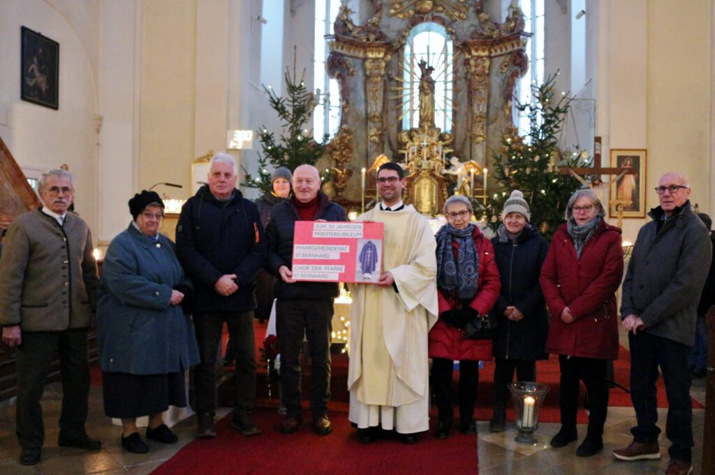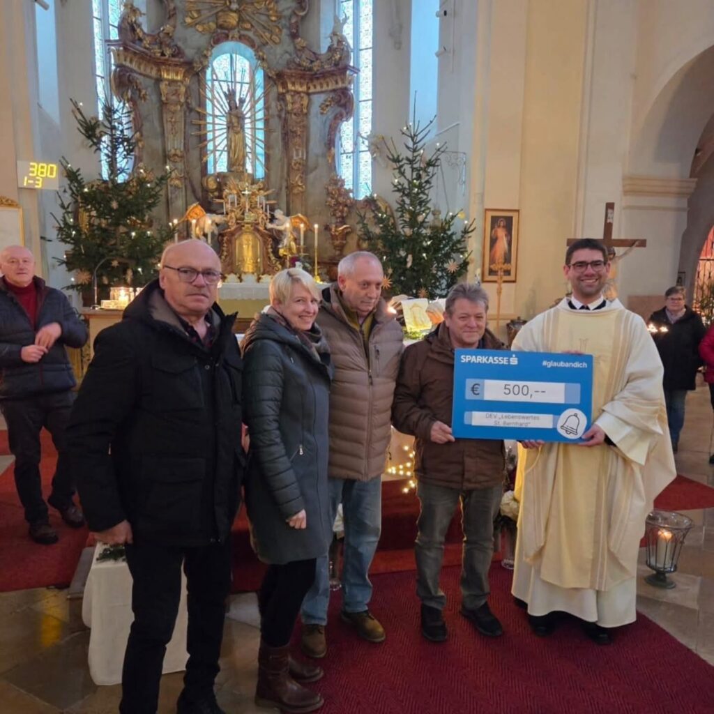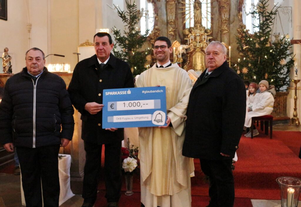 Bei der Jahresschlussmesse war es P. Clemens eine besondere Freude, den Unterstützungsbeitrag des ÖKB Fuglau und Umgebung von €1.000 und des DEV St. Bernhard von €500 (und damit die Patenschaft des Klöppels) entgegenzunehmen. Ebenso schenkte der PGR und Chor dem Pfarrvikar ein neues Messgewand zum 10jährigen Priesterjubiläum. Vielen Dank für diese Großzügigkeit und Wertschätzung!