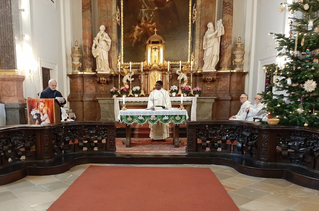 Pater Antoine Thierry Edang SP, feierte am Sonntag, dem 25.1.2026, mit einer Festmesse in der Piaristenkirche Horn sein 10-jähriges Priesterjubiläum. Gemeinsam mit der Piaristengemeinde zelebrierte P. Antoine, assistiert von den Diakonen Heribert Riegler und Heinz-Horst Meyer, die Hl. Messe, die vom neu gegründeten Chor musikalisch gestaltet wurde.
