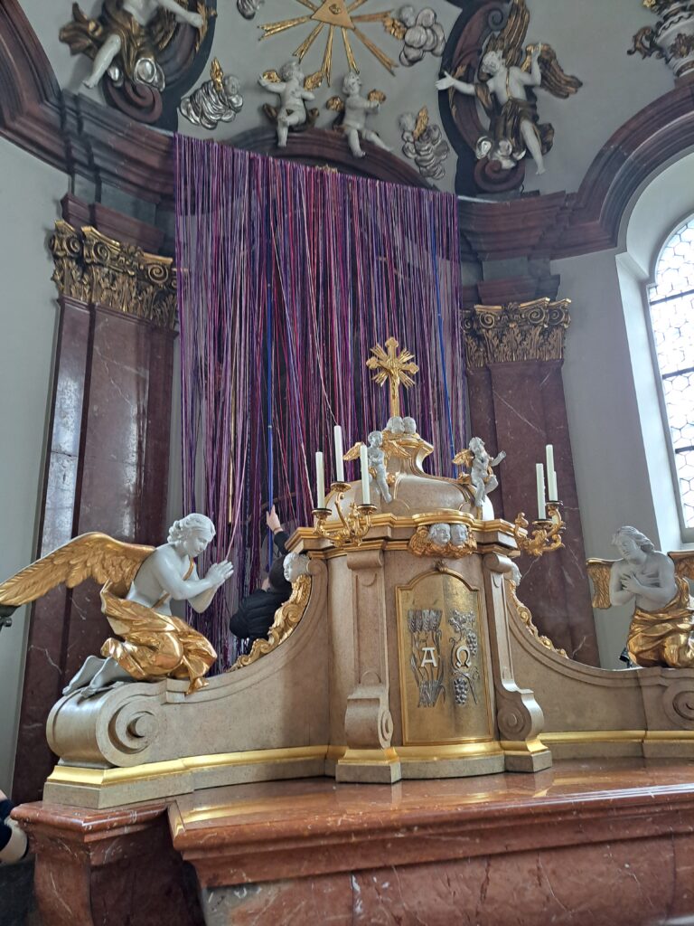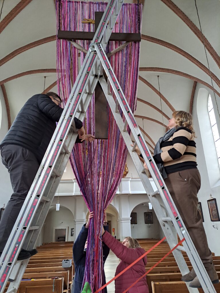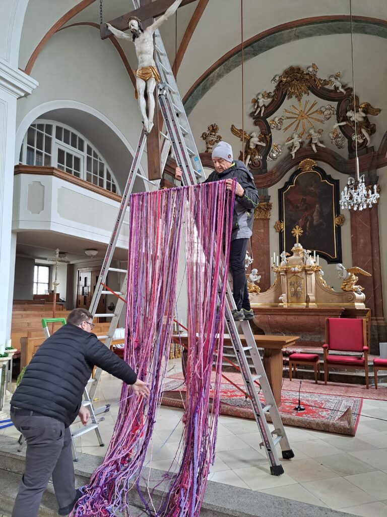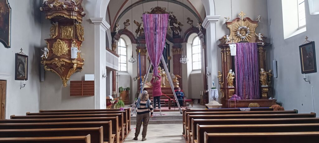 Viele kleine Beiträge verbinden sich zu einem Zeichen, das den Kirchenraum nicht nur optisch verändert, sondern auch eine Botschaft trägt: Wir Menschen sind miteinander verbunden – und gemeinsam können wir wachsen, einander stärken und den Glauben lebendig gestalten.