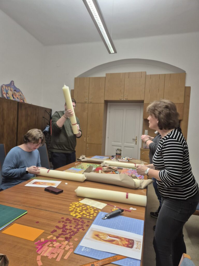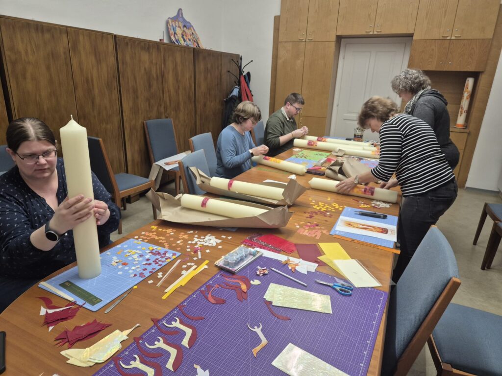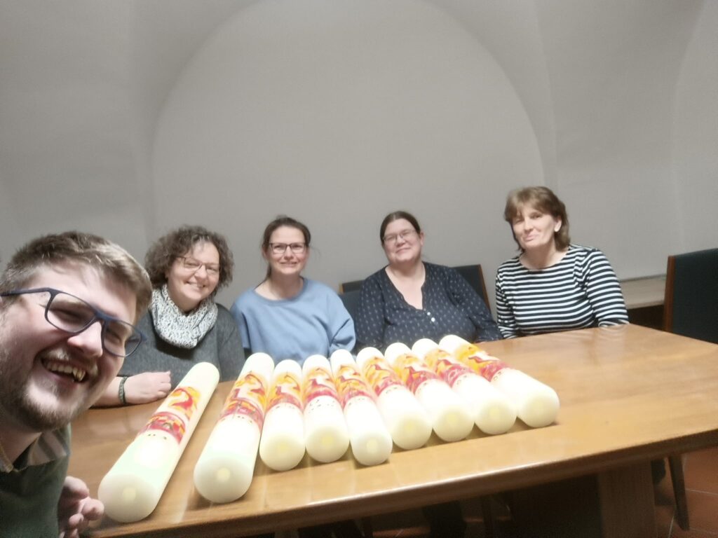 Es ist wieder ein schönes Zeichen der Gemeinschaft und der Verbundenheit, dass in allen Pfarrkirchen die gleiche Osterkerze brennen wird, die von Vertretern unserer Pfarren gestaltet wurde! Vielen Dank für euer Engagement!