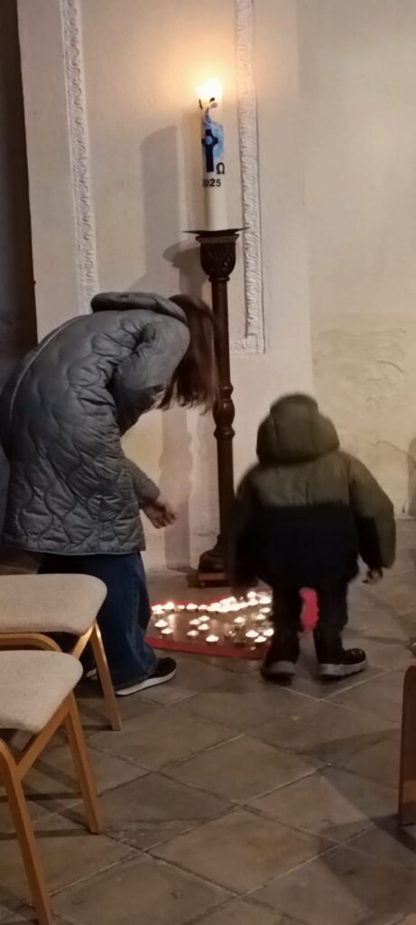 Zu Beginn der Andacht wurde deutlich gemacht, dass Jesus als Licht der Welt auch in unserem Herzen leuchten möchte. Eine Geschichte vom Rucksack mit schweren Steinen half den Kindern zu verstehen, dass jeder Mensch Dinge mit sich trägt, die belasten: Fehler, Streit oder Worte, die anderen wehgetan haben. Gemeinsam wurde darüber gesprochen, dass Jesus uns immer wieder Vergebung schenkt und einen neuen Anfang ermöglicht.