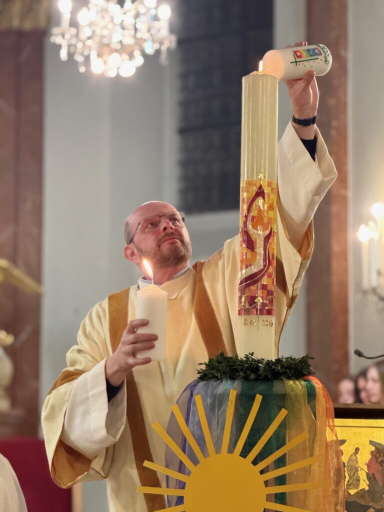 Im Licht der Osterkerze bekannten sie ihren Glauben an den auferstandenen Christus und wurden durch das Wasser der Taufe in ein neues Leben mit Gott hineingenommen.