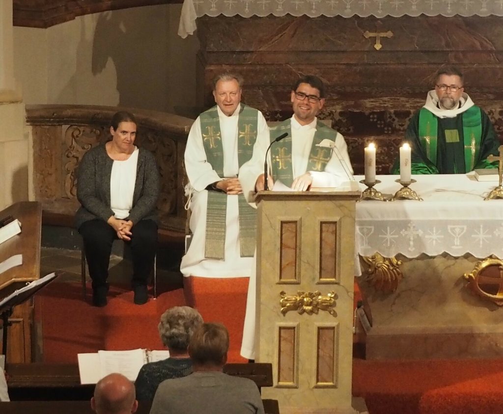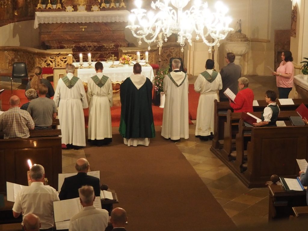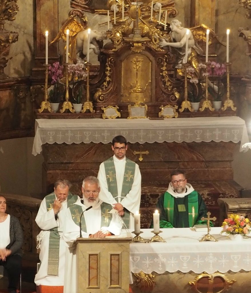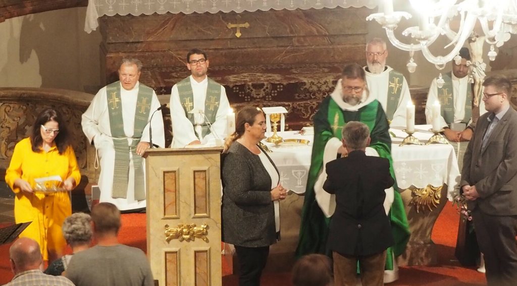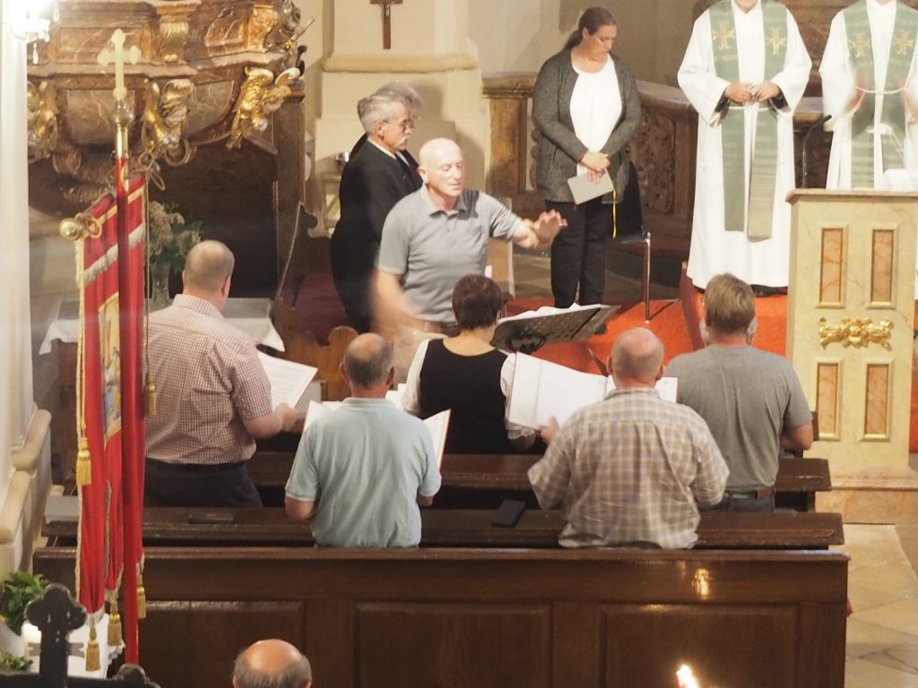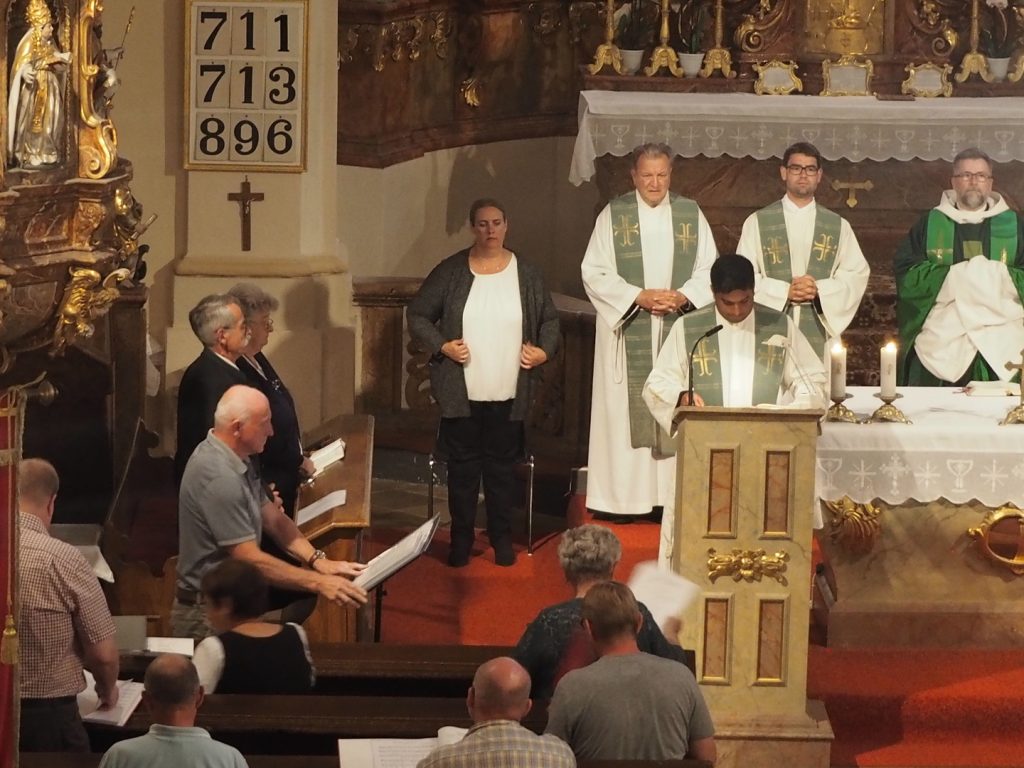 Zum ersten Willkommensgottesdienst im neuen Pfarrverband im Horner Becken lud die Pfarre St. Bernhard ein. Vor der Kirche wurde Pfarrmoderator P. Albert Groiß OSB symbolisch der Schlüssel der Kirche St. Bernhard überreicht. Der Kirchenchor unter der Leitung von Karl Gabler gestaltete den Gottesdienst musikalisch. Dechant P. Michael Hüttl OSB sprach in seiner Predigt davon, dass wir alle, jede Getaufte, jeder Getaufte, dazu berufen sind, hinaus zu gehen und zu helfen, lebendige Pfarrgemeinschaft zu sein, dass wir alle berufen sind, und keiner „hoch“würdig ist, sondern wir alle gleich würdig sind, Gottes Wort zu verkündigen und unsere Mitmenschen dafür zu begeistern. Vor dem Schlusssegen übergab Pfarrmoderator P. Albert Groiß OSB symbolisch den Schlüssel zum Tabernakel an Pfarrvikar P. Clemens Hainzl, der im Pfarrverband für die Pfarre St. Bernhard zuständig ist. P. Clemens gewann die Herzen seiner neuen Pfarrmitglieder mit den Worten: „Ihr braucht keine Angst haben, dass ich mich in der Kirche verstecke, ich komme zu euch – zur Jugend, zur Feuerwehr und zu euch allen!“ Bei der Agape, die der Dorferneuerungsverein und der Pfarrgemeinderat von St. Bernhard vorbereitet hatten, fanden viele Gespräche zwischen den Pfarrmitgliedern und dem Seelsorgeteam statt. Auf ein gutes Miteinander im Pfarrverband freuen sich die Pfarrmitglieder St. Bernhard und das Seelsorgeteam des Pfarrverbandes im Horner Becken.