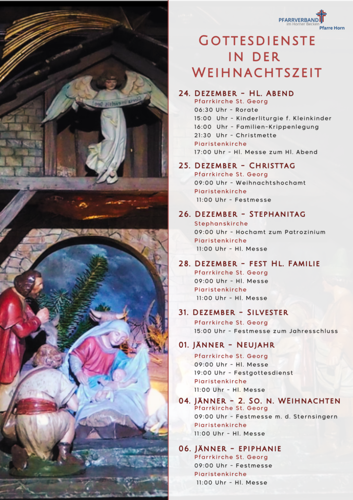 Herzliche Einladung zum Mitfeiern der Gottesdienste in Horn während der Weihnachtszeit.